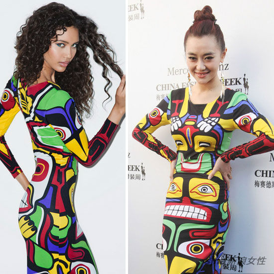 中國國際時裝周啟動儀式,愛戴一襲民族風緊身長裙秀纖細小蠻腰,搭配了大紅色的休閑鞋,梳起了俏皮的丸子頭,在配上流蘇項鏈和金屬朋克風的戒指首飾,整身表達了周末輕松愉悅的心情,同時花花綠綠的出街,又很吸引人眼球。