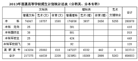 河南省2013年普通高等學(xué)校招生計(jì)劃統(tǒng)計(jì)總表(分科類(lèi)、分本專(zhuān)科)