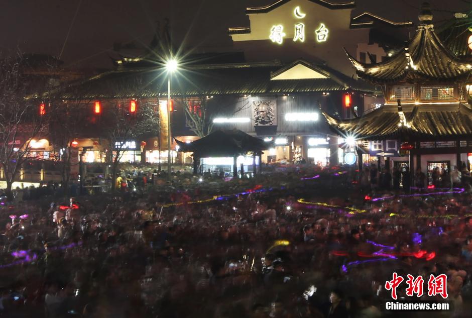 2月22日晚,南京警方在監(jiān)控涌進夫子廟廣場上的人流。 中新社記者 泱波 攝