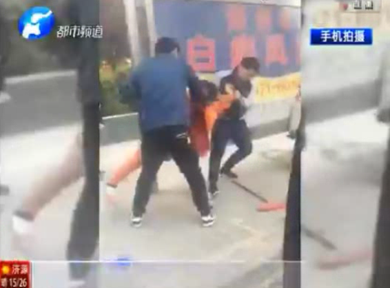 兩男子當街圍毆女環(huán)衛(wèi)工 遭圍觀群眾暴打
