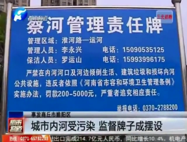 城市內(nèi)河污染 監(jiān)督牌子成擺設(shè)