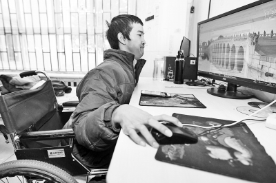 來福利院時,他帶來了心愛的“寶貝”,是爺爺為他買的電腦。從小到大,輪椅上的他,自學(xué)電腦,并通過電腦了解到外面的世界。