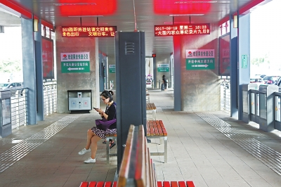 不過,與以往輝煌時候相比,如今BRT客流量可算是銳減。昨日中午,記者沿著農業(yè)路BRT沿線查看,除了農業(yè)路花園路站內人數稍多一些之外,其他站點平均不足10個人。與新建的寬敞明亮的站臺相比,乘客頗為冷清(如圖)。
