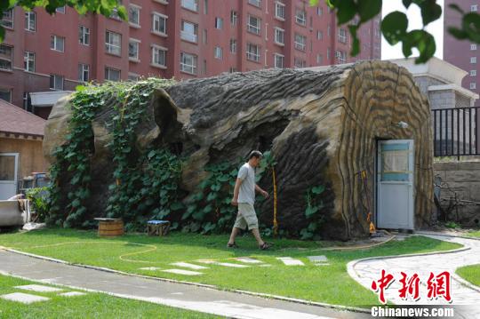 吉林省長春市近來出現(xiàn)一所外形酷似樹墩的公共廁所,引來很多市民的關注。這座公廁乍一看去像是一尊巨大的樹干,長約十米左右,直徑約四米。張瑤 攝